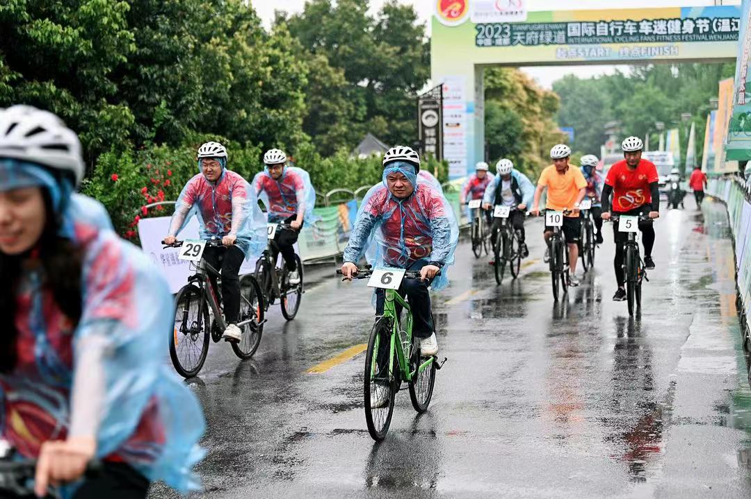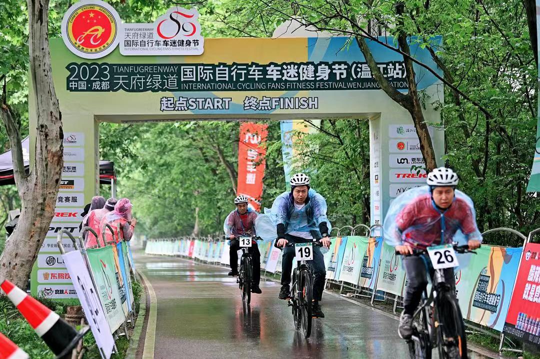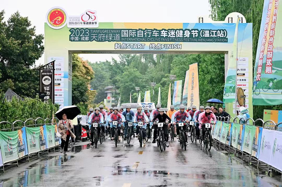 新华社成都4月28日电(记者刘宁、陈地)为期两天的2023中国·成都国际自行车车迷健身节(温江站)28日开幕,近千名自行车运动爱好者在蒙蒙细雨中一路骑行,尽情享受健身带来的欢乐。